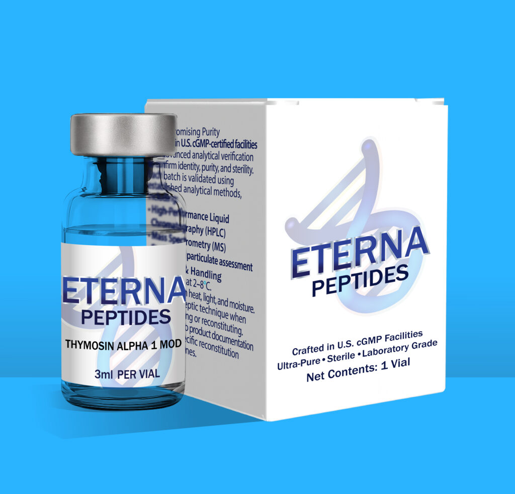 Thymosin Alpha-1 (modified form) is studied for its ability to modulate immune function and support healthy aging. While often classified under immune peptides, its role in cellular protection also aligns with anti-aging research.